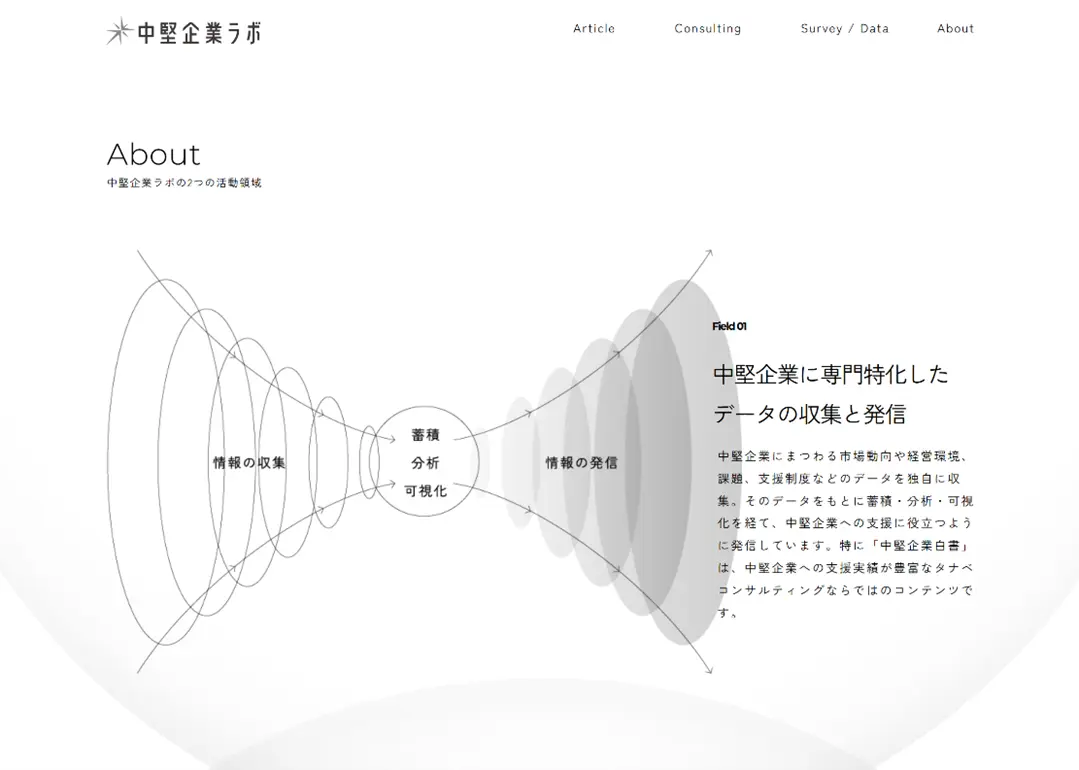 日本の経営コンサルティングのパイオニアである株式会社タナベコンサルティング(本社:東京都千代田区・大阪市淀川区、代表取締役社長:若松 孝彦)は、中堅企業に専門特化したデータの収集と発信を行うWebページ「中堅企業ラボ」を新たに公開いたしました。
